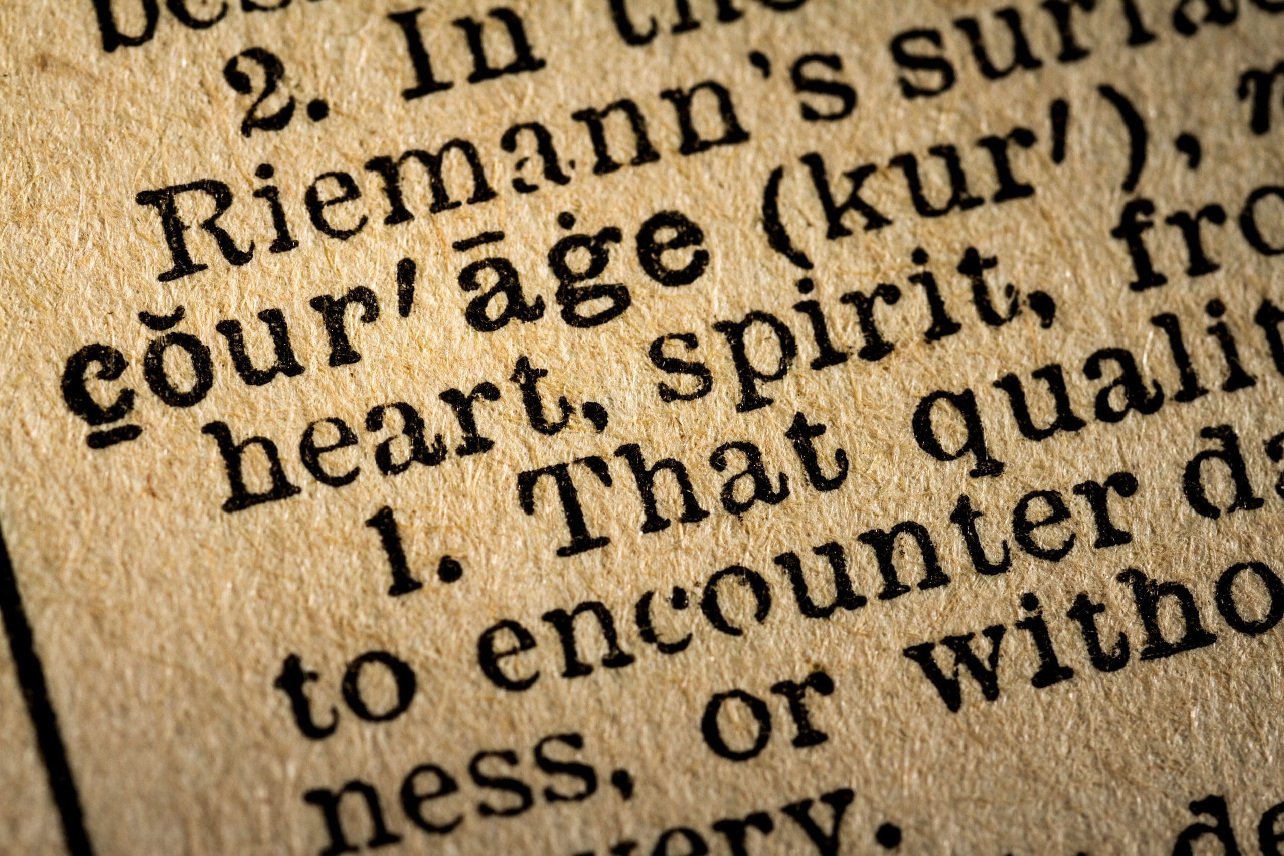 Close-up of the word COURAGE and its definition | Close-up of the word COURAGE and its definition