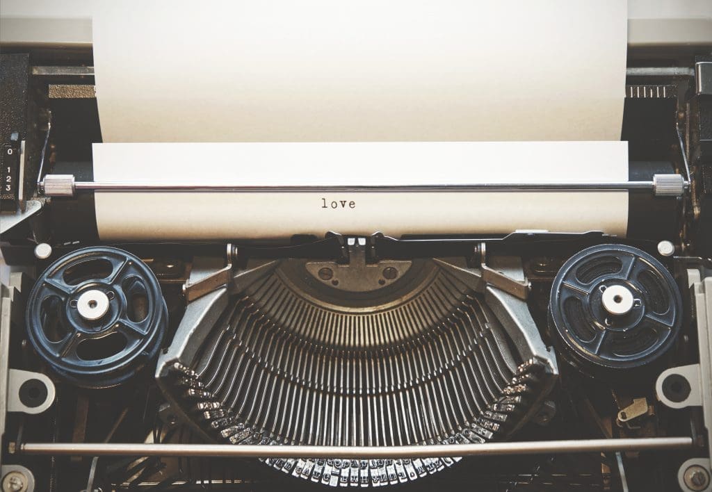 Word “love” written with old typewriter
